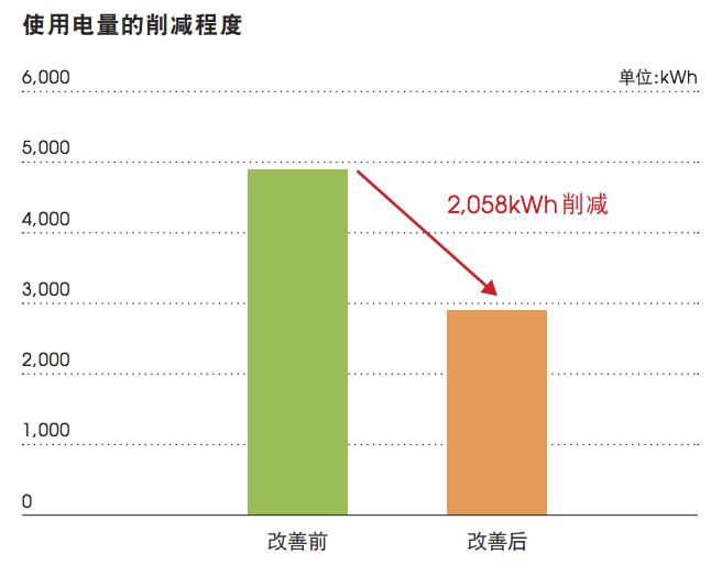 這六臺新空調不僅節(jié)能,而且主機較小,能夠節(jié)省工廠空間,空調屬于靜音型,且過濾器便于清掃,具有復合效果,1個月能夠削減2058kWh的使用電量。