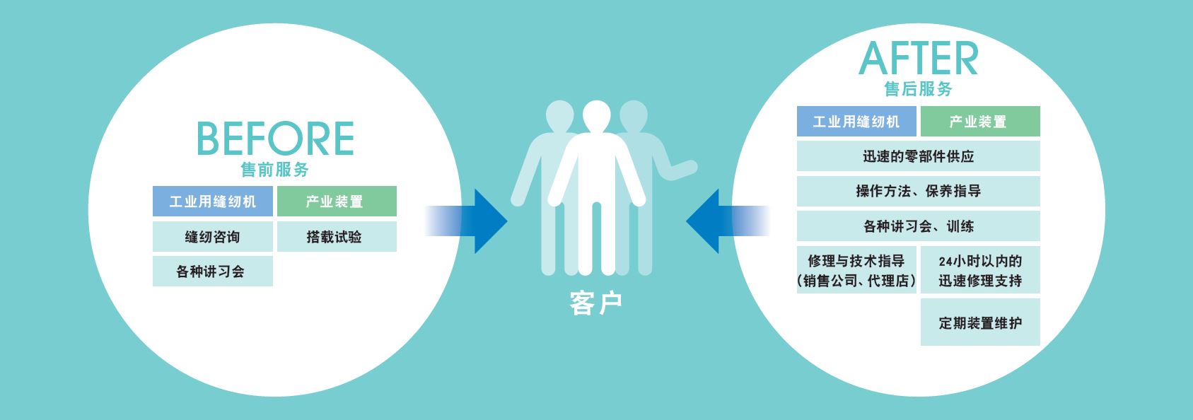 這是準(zhǔn)確把握作為JUKI主力事業(yè)的工業(yè)用縫紉機(jī)和產(chǎn)業(yè)裝置的客戶需求,針對采購產(chǎn)品的客戶,提供消耗品和補(bǔ)充用零部件以及售后服務(wù)的事業(yè)。旨在讓客戶在更好的環(huán)境使用產(chǎn)品。