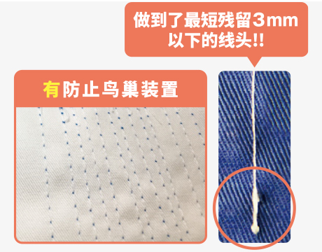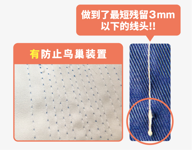 通過(guò)自動(dòng)夾住開始縫制的針線,可得到最適合的針線量。