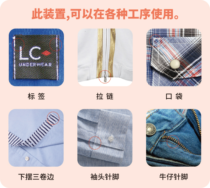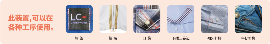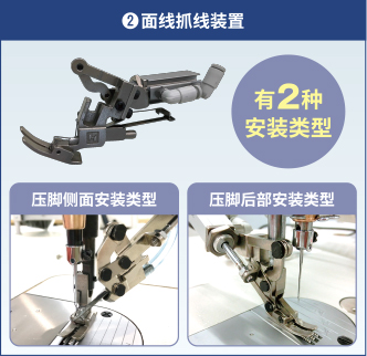 用于防止自動(dòng)切線縫紉機(jī)始縫時(shí)出現(xiàn)的“鳥巢”現(xiàn)象,并可加裝的選購(gòu)裝置??墒∪タp制開始部分的剪線頭等的處理工序,提高生產(chǎn)效率。因?yàn)閵A住了切線后的針線,就算從布料邊開始縫制針腳也會(huì)很穩(wěn)定。