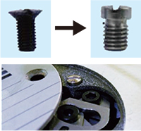 通過在固定銷類型中很難進行拆卸的后面的針板固定螺絲, 將能夠簡單地維護時的針板的拆卸。