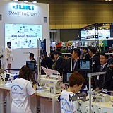 JUKI以「JUKI Smart Solutions - Innovate Your Business -」為參展理念,在所有參展商中占據(jù)了最大規(guī)模的展示面積(1,575m²),其中工業(yè)機(jī)91臺(tái),家庭用縫紉機(jī)68臺(tái)合計(jì)159臺(tái)縫紉機(jī),分為6個(gè)區(qū)域3個(gè)項(xiàng)目分別展示。