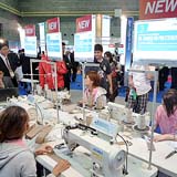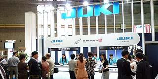 JUKI以「Be the Best in CS~ New Edge Solution for Your Success ~力爭JUKI能提供的最高CS」的理念為根本,是所有出展公司中規(guī)模最大(120個小間、1,080m²),并以5個展位及2個展臺分別展示有工業(yè)機(jī)53臺、家用機(jī)47臺共計100臺機(jī)器。
