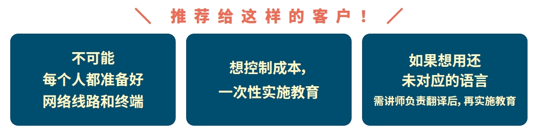 這是普通的電子教學聽課方式。每位學員都可以在各自的終端(PC、平板電腦、智能手機)上聽課、管理員可以在網上管理學員的進展。