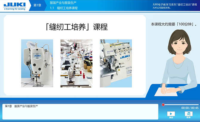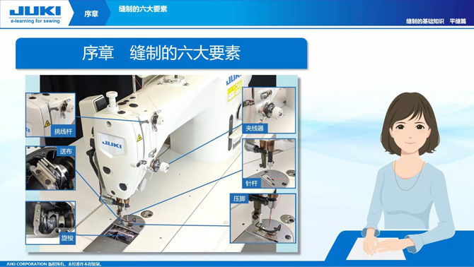 JUKI將長期養(yǎng)成的技術教育和管理教育的訣竅e教學化。通過簡單易懂的視頻和解說、可以順利地學習到各種知識。每一章的結尾都有一個測試、可以檢查每一章的學習理解程度。