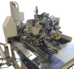 帶有單針停止功能的雙針平縫機和電子調(diào)節(jié)式嵌入式角刀,能夠?qū)崿F(xiàn)自動縫制平行雙嵌條、平行單嵌條、斜雙嵌條、斜單嵌條、梯形縫制(帶帶蓋和無帶蓋)。因為裝備了帶蓋自動供給裝置,包括設(shè)置在內(nèi)的循環(huán)時間縮短,生產(chǎn)效率大幅提升。