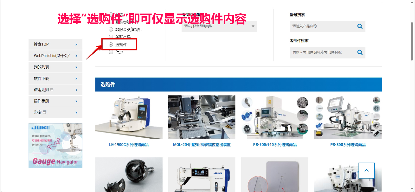 在選購件頁面介紹的實(shí)用選購件,現(xiàn)在也可以與零件表一同檢索,更加方便快捷地找到您需要的零件或想了解的零件信息。