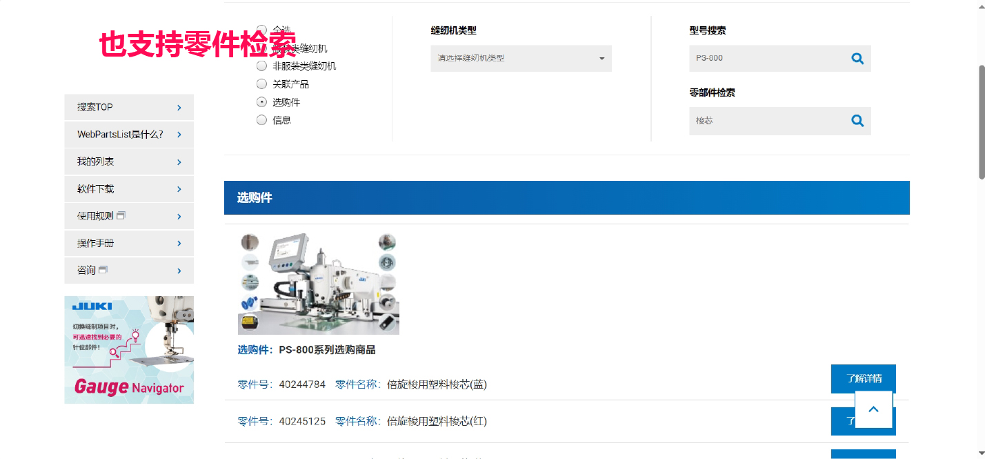 JUKI WebPartsList有充實(shí)的查找所需部件的功能。