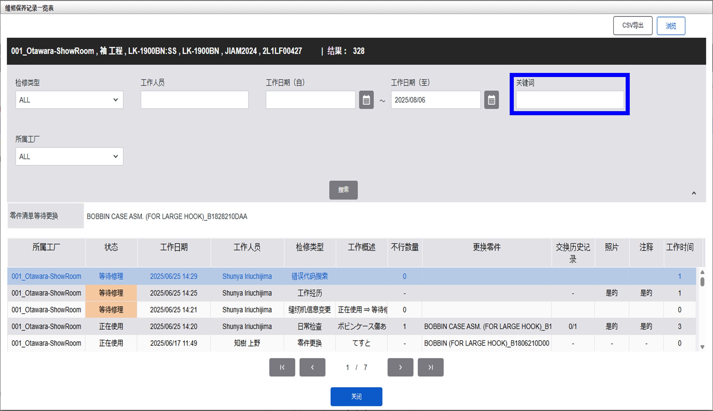 維修保養(yǎng)記錄列表中,現(xiàn)在可以根據(jù)作業(yè)概要和更換零件索作業(yè)歷史。