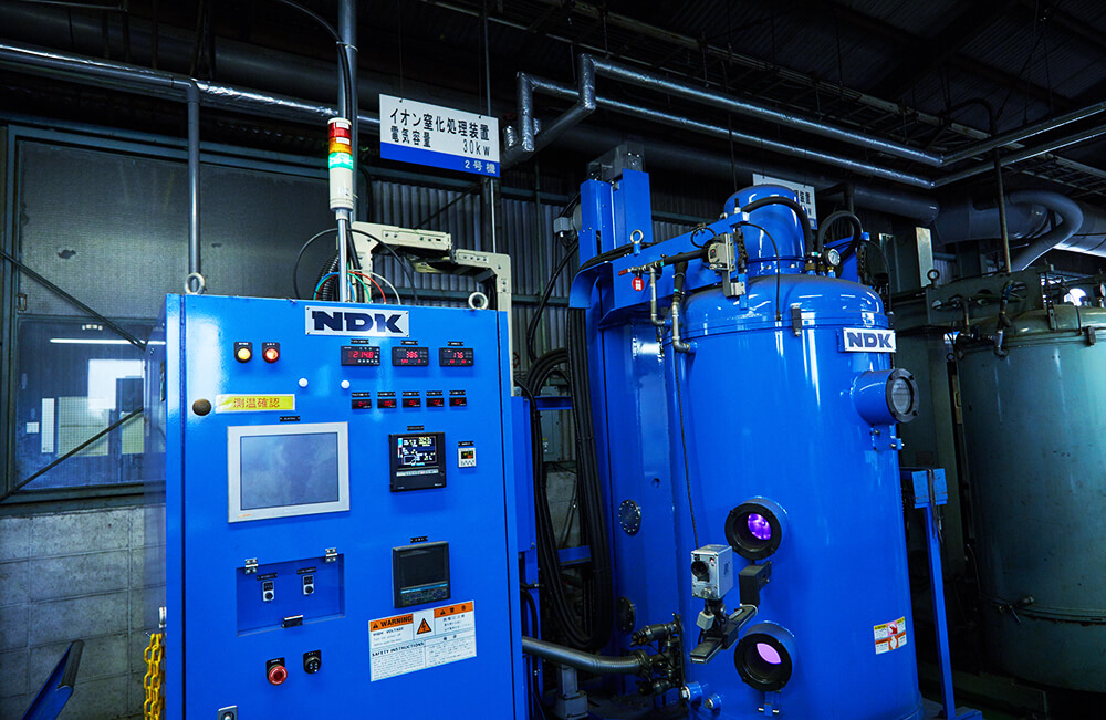 吹動氮氣變成N+離子、使處理品表面帶電,通過使活性化氮元素擴散而使表面硬化的方法??商幚頊囟葹?00℃~570℃。