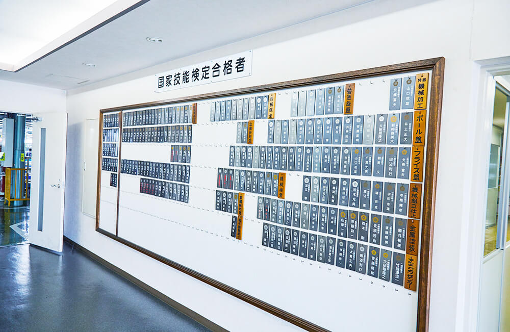 以“物品制造的根本是育人”的思維方式為基礎(chǔ)、推進員工取得國家審定的技能資格。制造部門78%以上的員工已取得國家資格。