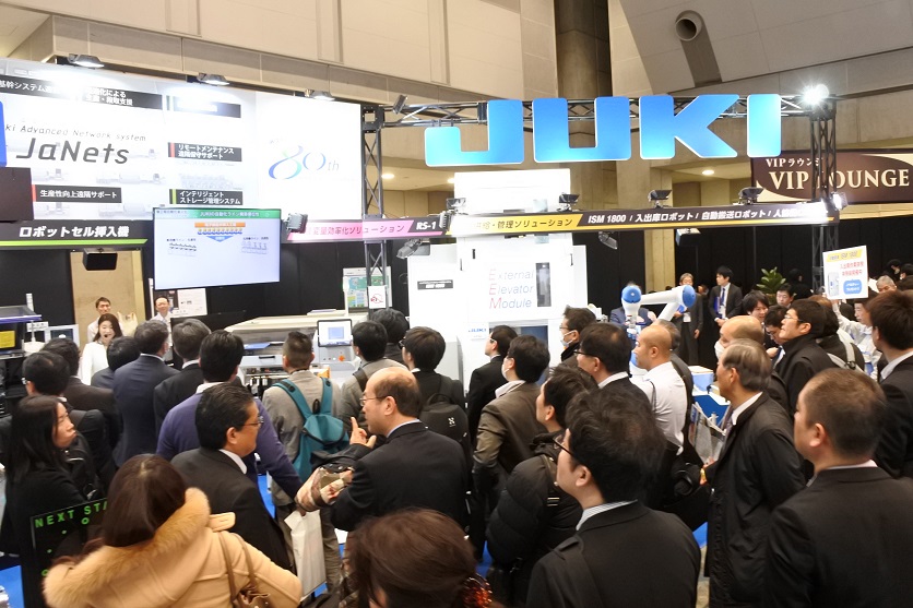 我們以“最新的生產(chǎn)智能化系統(tǒng)解決方案”為主題,以元件對應(yīng)范圍廣和高生產(chǎn)性兼?zhèn)涞母咚僦悄苣K貼片機(jī)[RS-1]、和實現(xiàn)部品供給?管理的自動化?省人化的[智能存儲管理系統(tǒng)]、以及實現(xiàn)SMT后工程手插件工程自動化?省人化的[機(jī)器人插入系統(tǒng)]為提案,提出了前后工程、SMT工程到工廠全體的以生產(chǎn)智能化為目的的最新系統(tǒng)化整體解決方案。