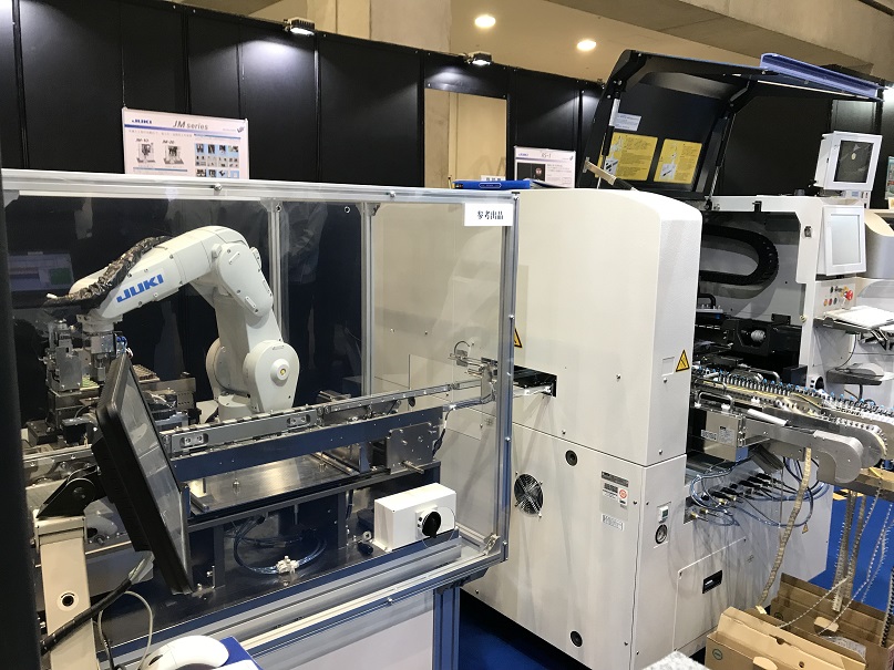 在[后工程自動化省人化解決方案]中,對SMT后工程、操作員手動插入的生產(chǎn)過程自動化,品質(zhì)和生產(chǎn)效率向上,提出了實現(xiàn)最新[機(jī)器人插入系統(tǒng)]整體方案。大量的已實現(xiàn)元件插入自動化[JM系列]插件機(jī)、和采用了多關(guān)節(jié)機(jī)器人,大大擴(kuò)展了插入過程自動化領(lǐng)域,[新型機(jī)器人單元插件機(jī)]組合的機(jī)器人插件生產(chǎn)線展示、擴(kuò)大了手插件工程自動化領(lǐng)域的提案,受到廣泛關(guān)注。