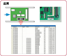 從基板條碼讀取基板制造號(hào)碼記錄貼裝元件的卷帶制造號(hào)碼??梢詮脑刻?hào)碼跟蹤調(diào)查其元件所貼裝的基板制造號(hào)碼或進(jìn)行相反追查及搜索。搜索功能可以與客戶獨(dú)自系統(tǒng)相連接。