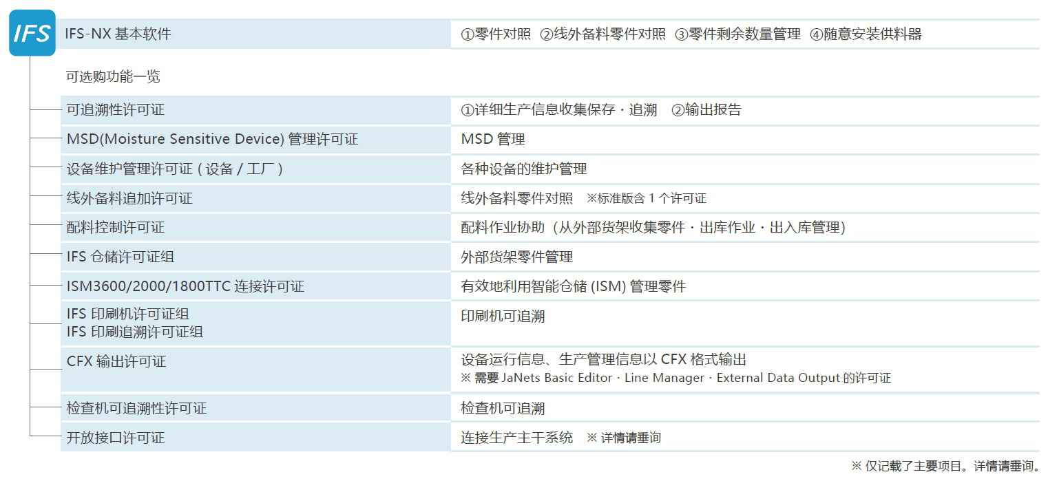 系統(tǒng)具備防止零件誤安裝、可追溯性等品質管理功能,可提升效率的外部準備功能、零件剩余數(shù)量管理功能?!砂葱柽x擇追加功能