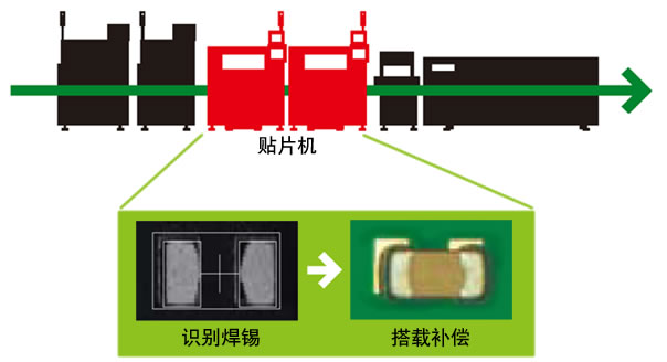 因貼裝貼片機識別印刷位移來補償貼片,故可不變動原使用中的生產(chǎn)線結(jié)構(gòu)及外部裝置直接引進,提供了低成本解決方案。
