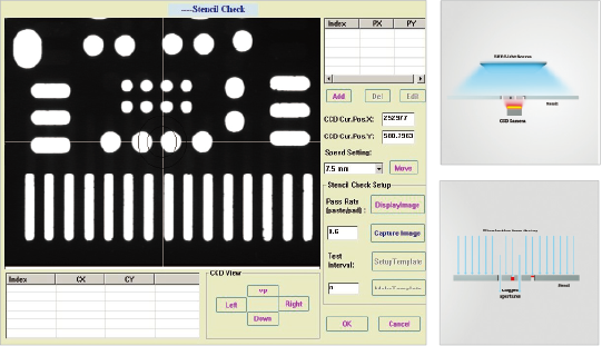 在上部設置面板燈,用下部的CCD 照相機檢查鋼網(wǎng)開口部。
